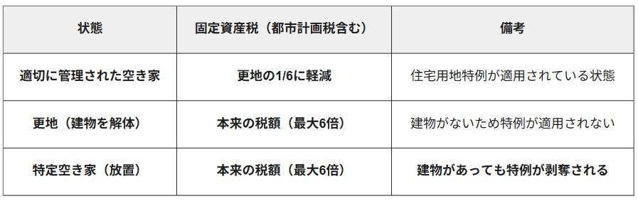 適切な管理がされていない空き家が「特定空き家」に指定されると、この「最大6分の1に減額される」という特例が解除されます。