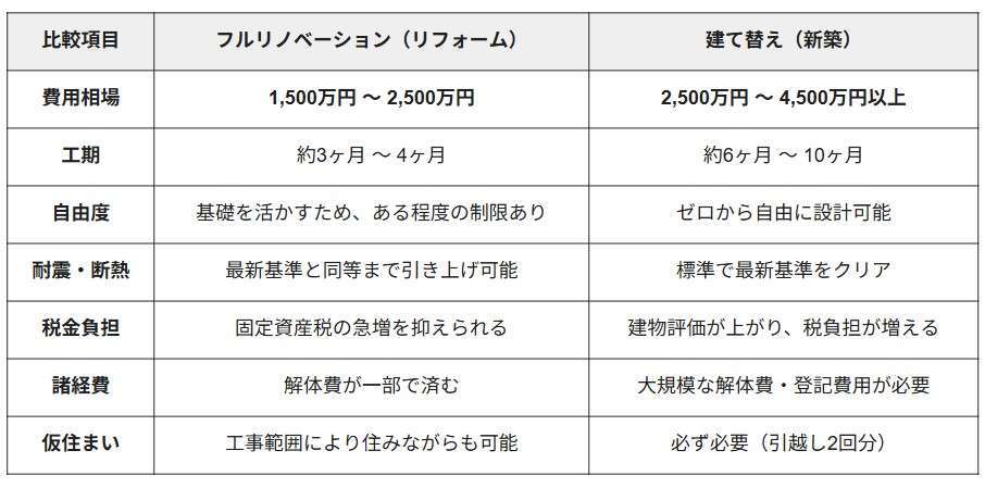 ・リフォーム vs 建て替えの概算見積比較